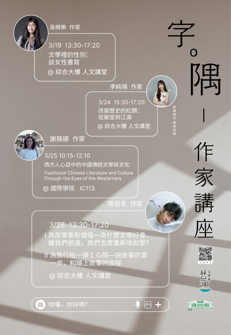 【第八屆靜思湖文學季】「字。隅─作家講座」活動開始報名囉!