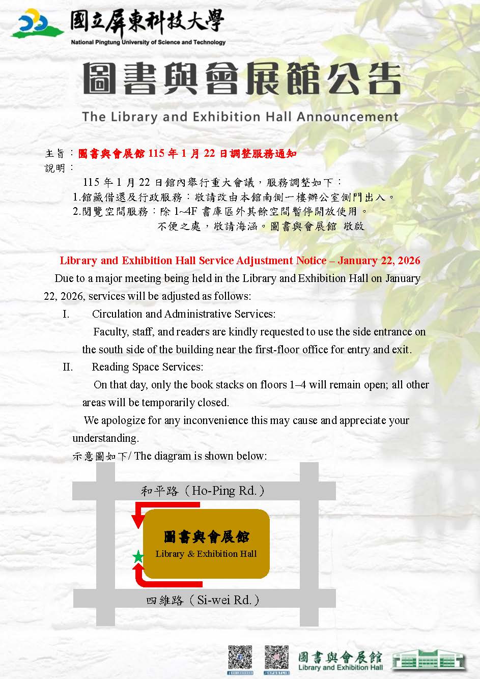 【Library and Exhibition Hall Service Adjustment Notice – January 22, 2026】